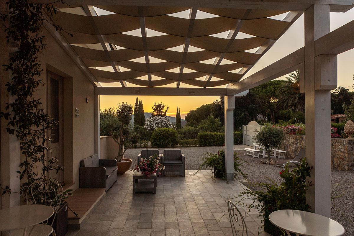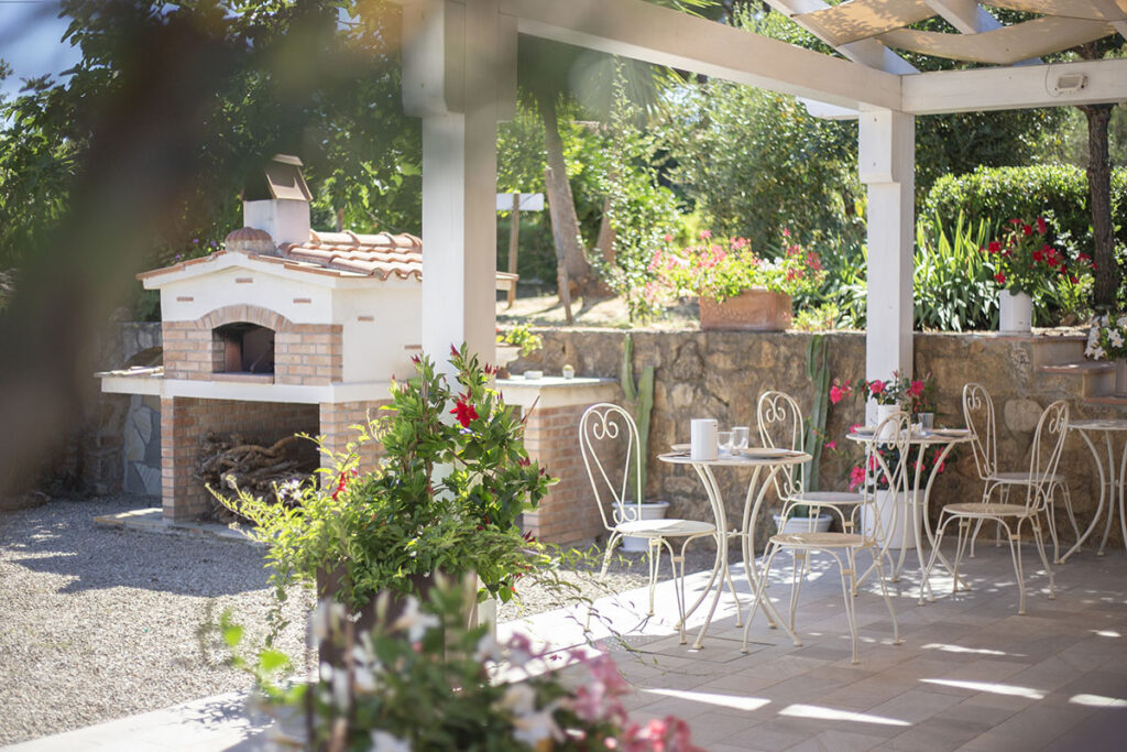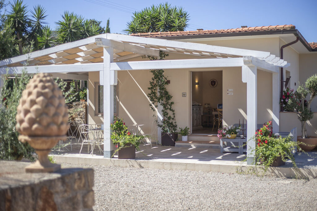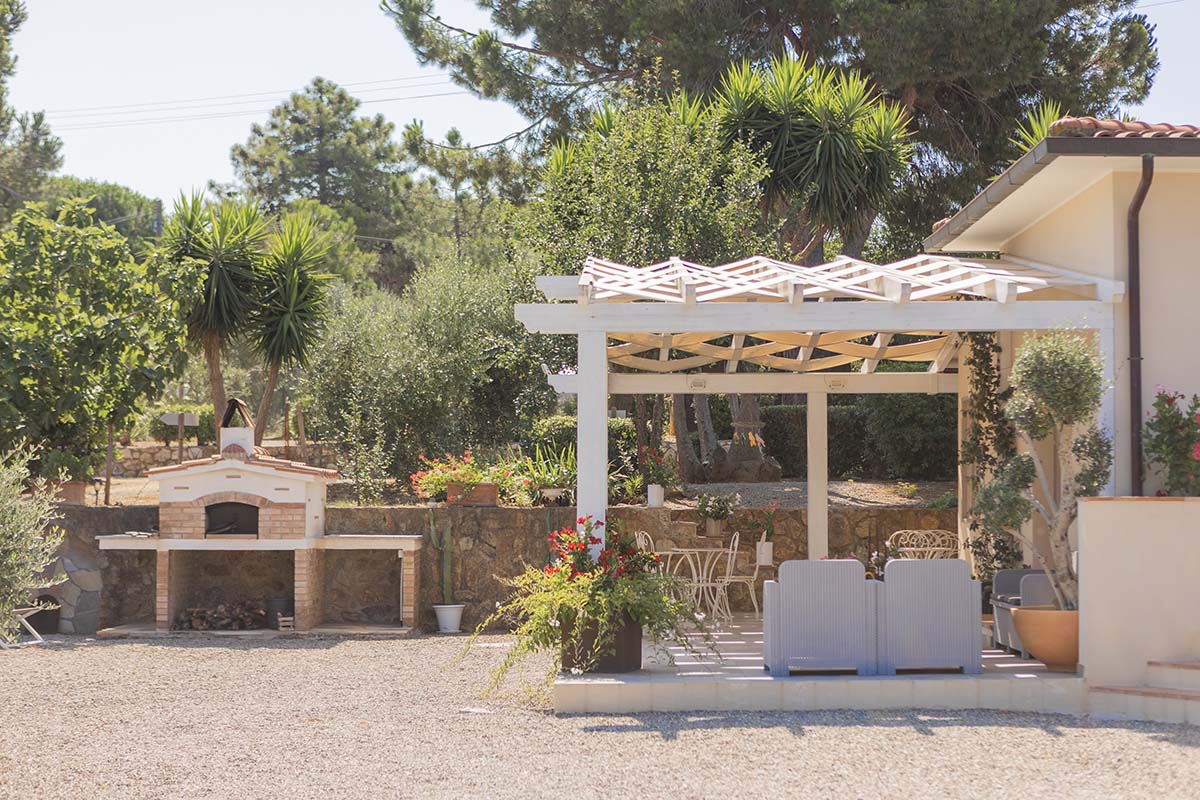 Nell’area comune ogni mattina viene servita, sotto il fresco pergolato, una ricca colazione con torte fatte in casa e con prodotti tipici a chilometro zero.